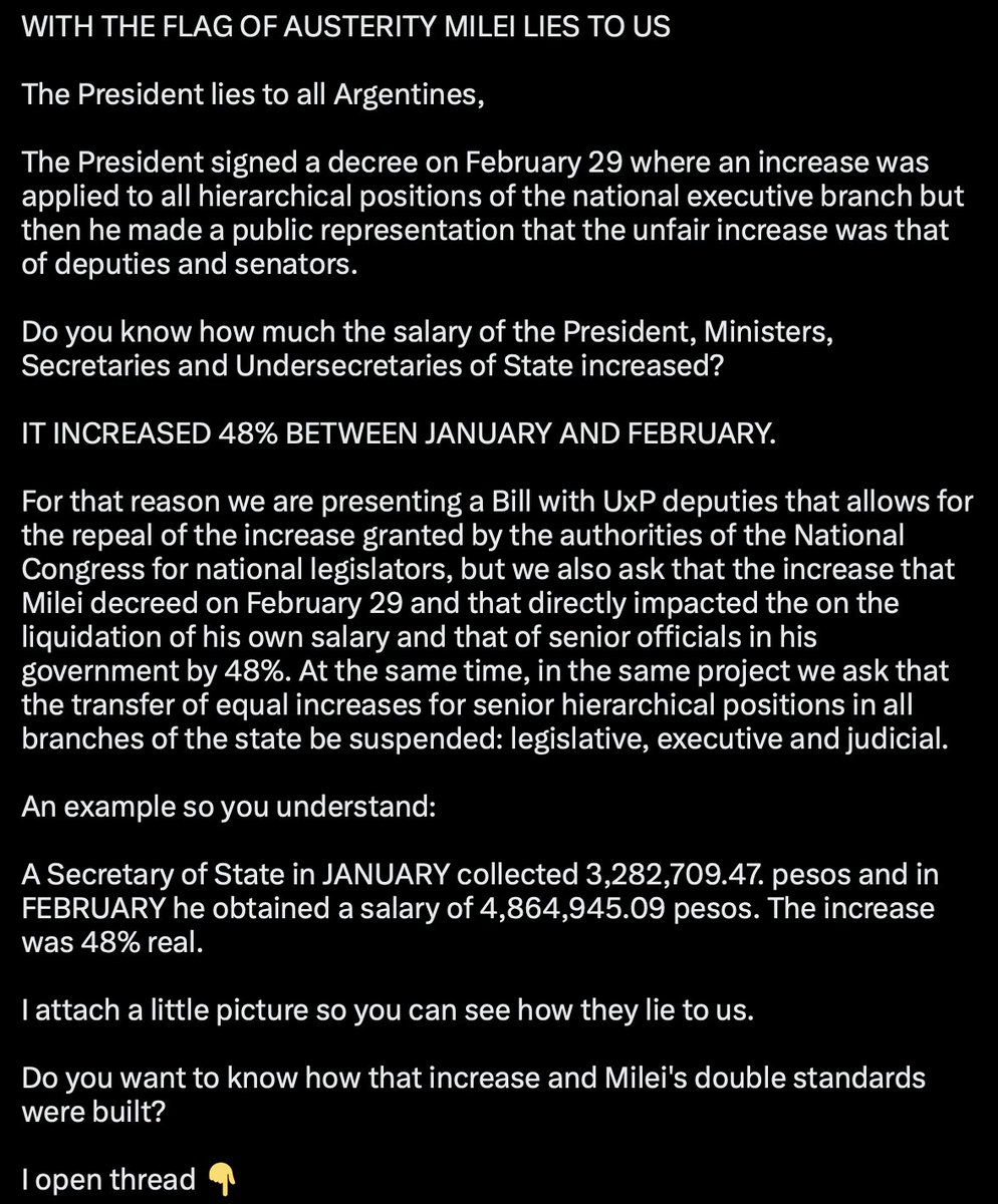 🇦🇷🚨‼️ HAHA: President Javier Milei has rescinded a 48% raise for himself and his cabinet following backlash over the increase and his claim that it was automatic despite signing the decree authorizing it.