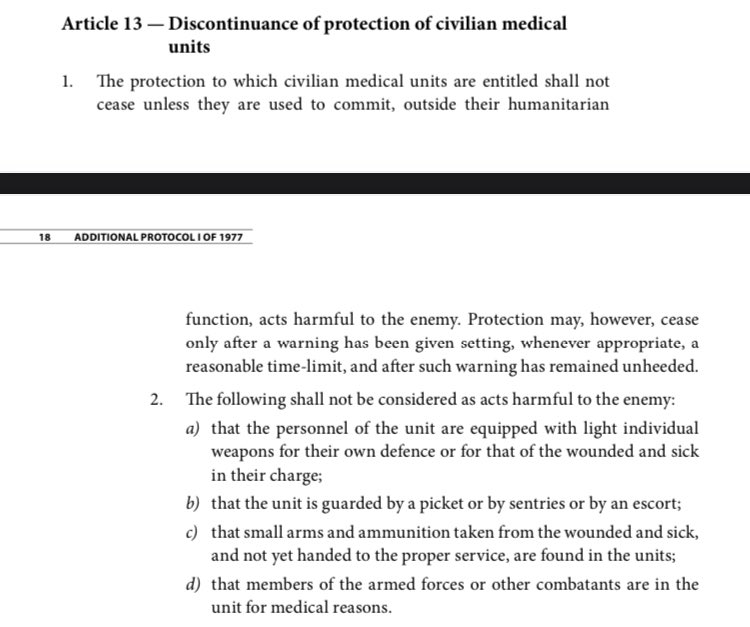 3. The screenshot is cut, leaving out crucial information about what counts as a hostile act and why it is normally extremely difficult to argue that a medical unit has lost its protection.