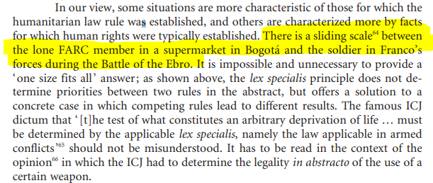 But does this mean that if the army finds a "member" having a drink in a cafe, they can shoot him point blank execution style no questions asked? Experts again disagree. According to Marco Sassoli: