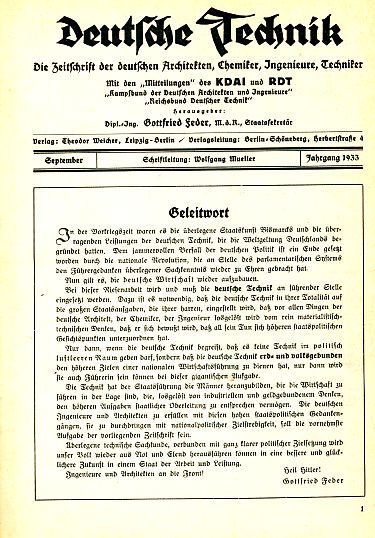 Ce périodique est envoyé aux membres de l’Association des ingénieurs allemands (le sigle allemand est VDDI). Le tirage est de 4.000 exemplaires en 1914, 10.000 en 1937. Des idées typiquement modernistes réactionnaires y sont développées. 12/25