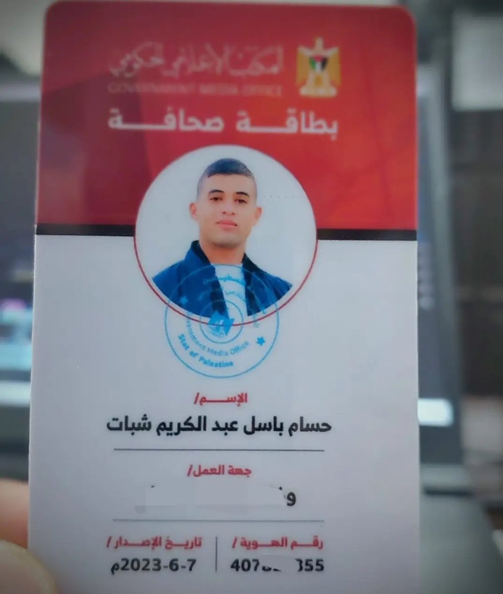 So coy, in fact, that he appears to have.... blurred out the outlets name on his Hamas government-given press badge? Do I have this right?