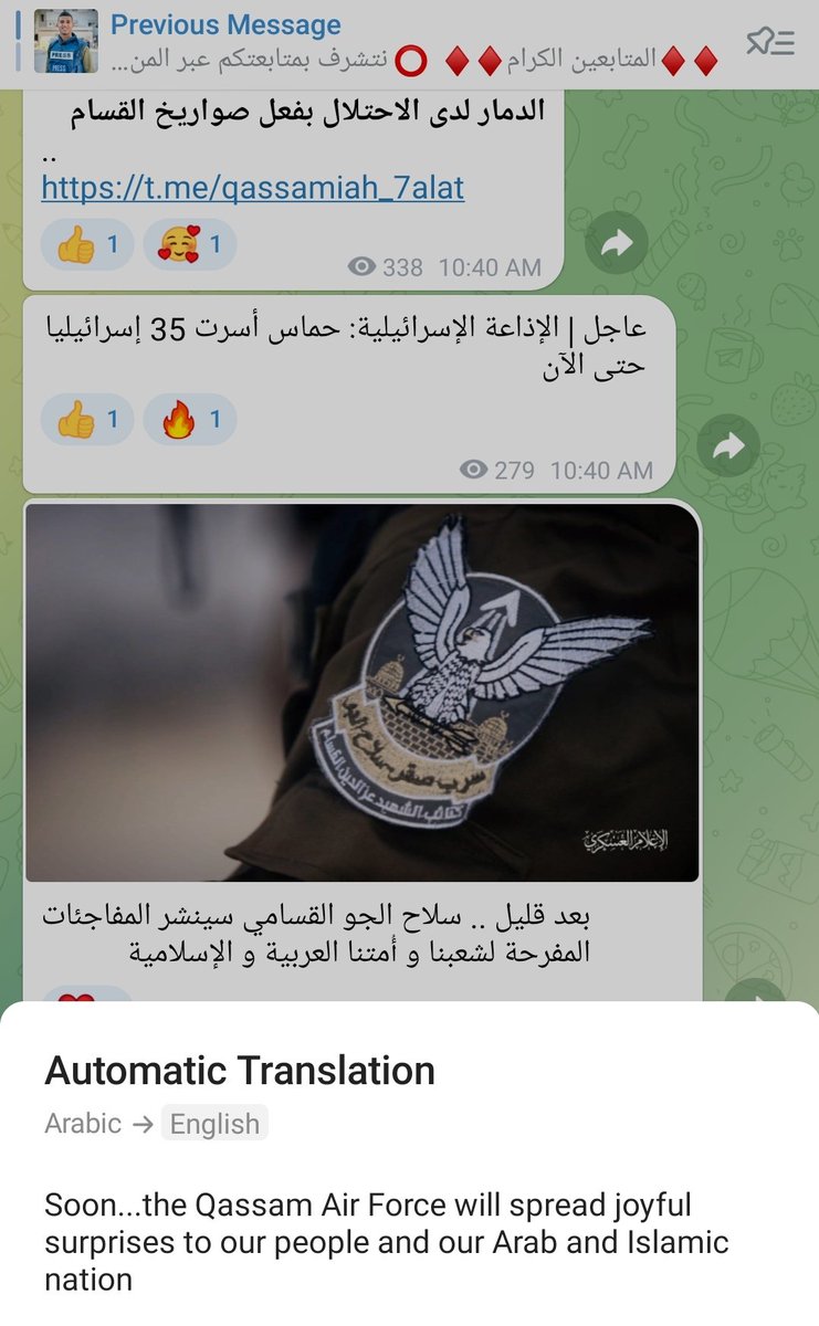 Here are some non-graphic screenshots of posts from the Telegram channel, including posting explicit Hamas calls for violence (he took the first picture himself by the way)