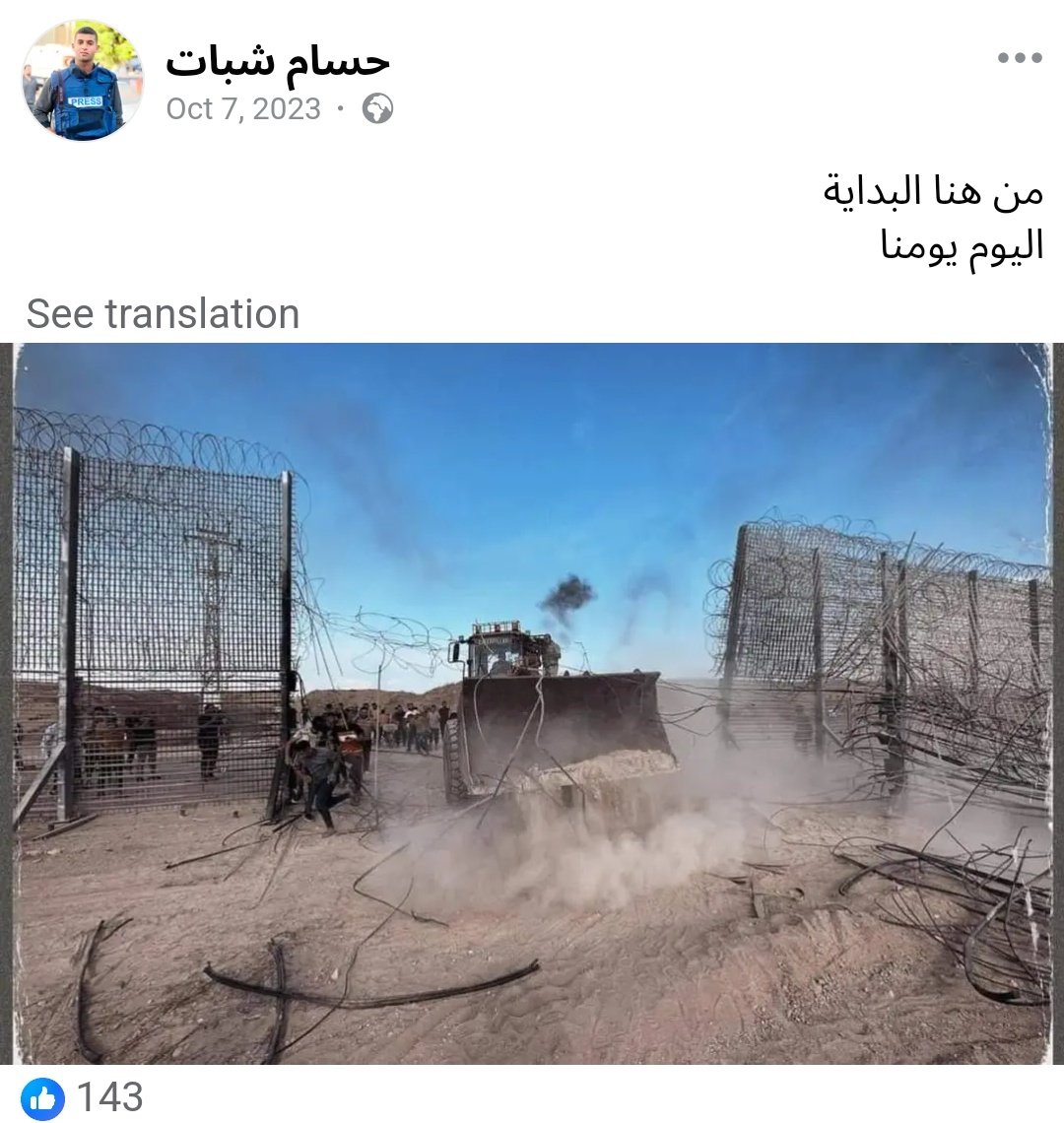 Hossam also posted some non-graphic but still despicable photos on his Facebook, including from the breached security fence