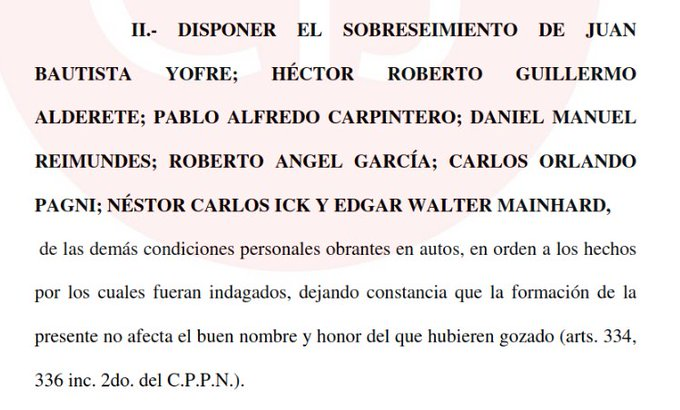 10. Por esto fueron procesados Yofre, Pagni y otros.