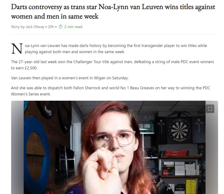 I wrote an article on transgender dart players a few months ago. Go and give it a read - the controversy is rather ridiculous and shows that anti-trans sports bans are about exclusion, not advantages.