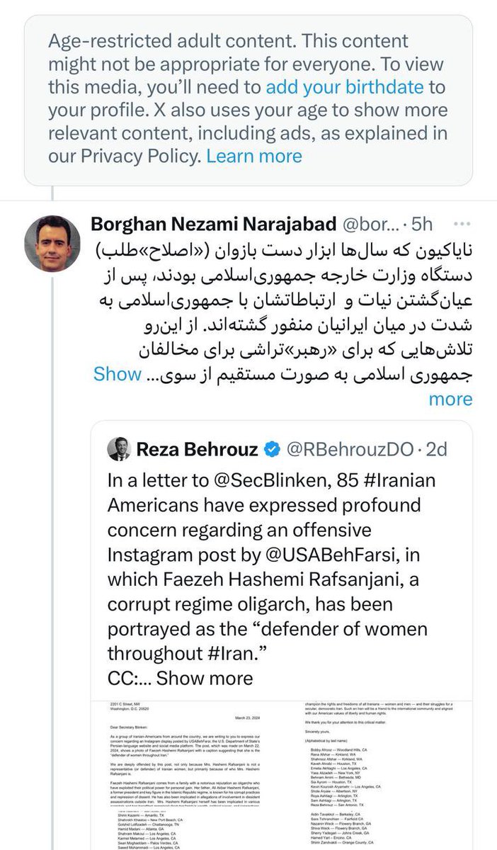 پینوشت. به نظر میرسد کانالهای مرسوم «فرهیختگان» در اکس/توییتر دوباره فعال شدهاند تا تعداد کمتری این مطلب را ببینند. گویا ترویج سانسور با نام مبارزه با «(دیس)اینفورمیشن» از علاقمندیهای جدید برخی «فرهیختگان» شده است.