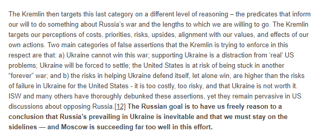 2/ The Russian goal is to have us freely reason to a conclusion that Russia’s prevailing in Ukraine is inevitable and that we must stay on the sidelines — and Moscow is succeeding far too well in this effort.