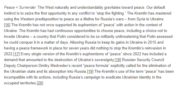 Russia is hijacking and substituting key concepts of Western debate about this war, such as notions of peace and defense, contributing to Western category errors about both. 🧵(1/10)