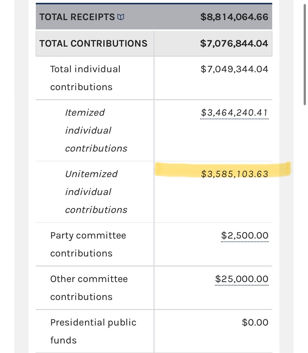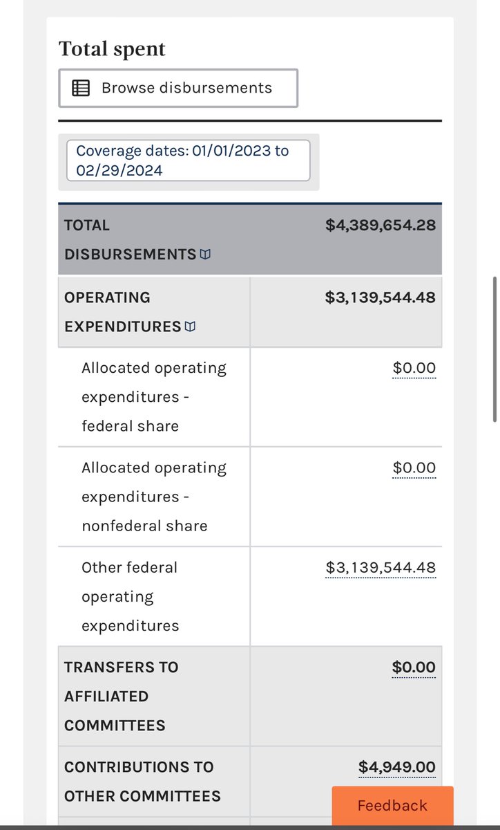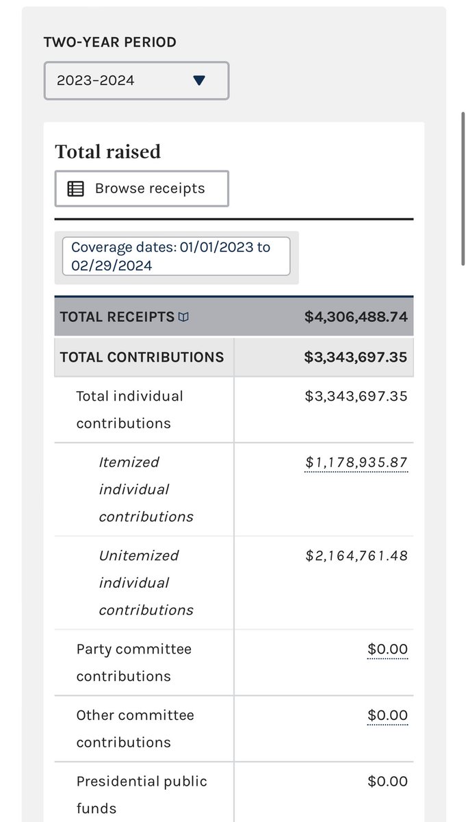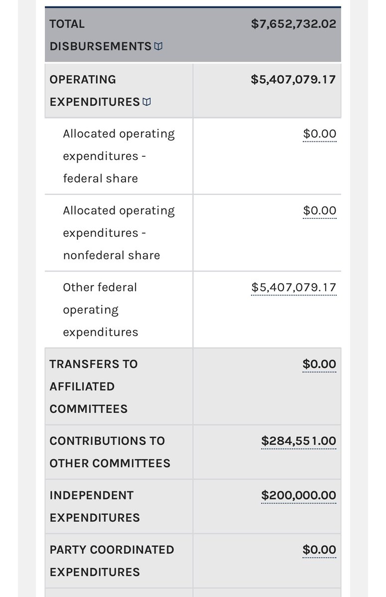 The PAC is still open by the way… it raised another $4.3 million in 2023. Over $2.1 million of that from “small dollar donors” 😏 and of course an $840k transfer from his OTHER PAC, which was leftover $ from his principal congressional campaign, that he’s been sitting on for over 5 years now.