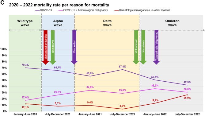 2) "The EPICOVIDEHA registry collected data from January 2020 to December 2022, involving 8767 COVID-19 cases in hematological malignancy patients from 152 centers across 41 countries, with 42% being female. Over this period, there was a significant reduction ...