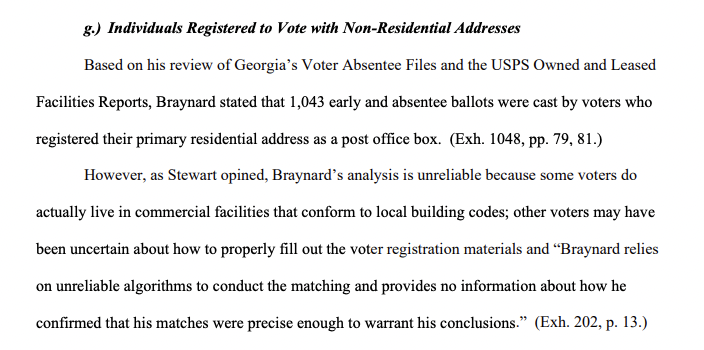 4) Eastman relied on a claim that 1,043 voters improperly registered with nonresidential addresses, but the data failed to account for some voters who live in commercial facilities or simply misunderstood registration forms. politico.com/news/2024/03/2…