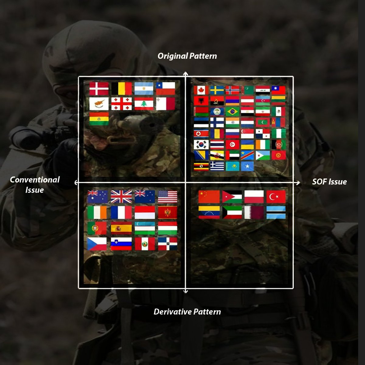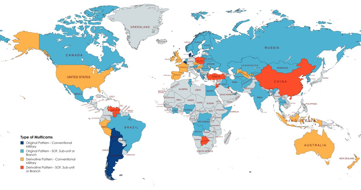 5/8 Additionally, while some forces might fully adopt the multicam for their conventional use, others reserve it uniquely for SOF. Here's a chart classifying is usage: