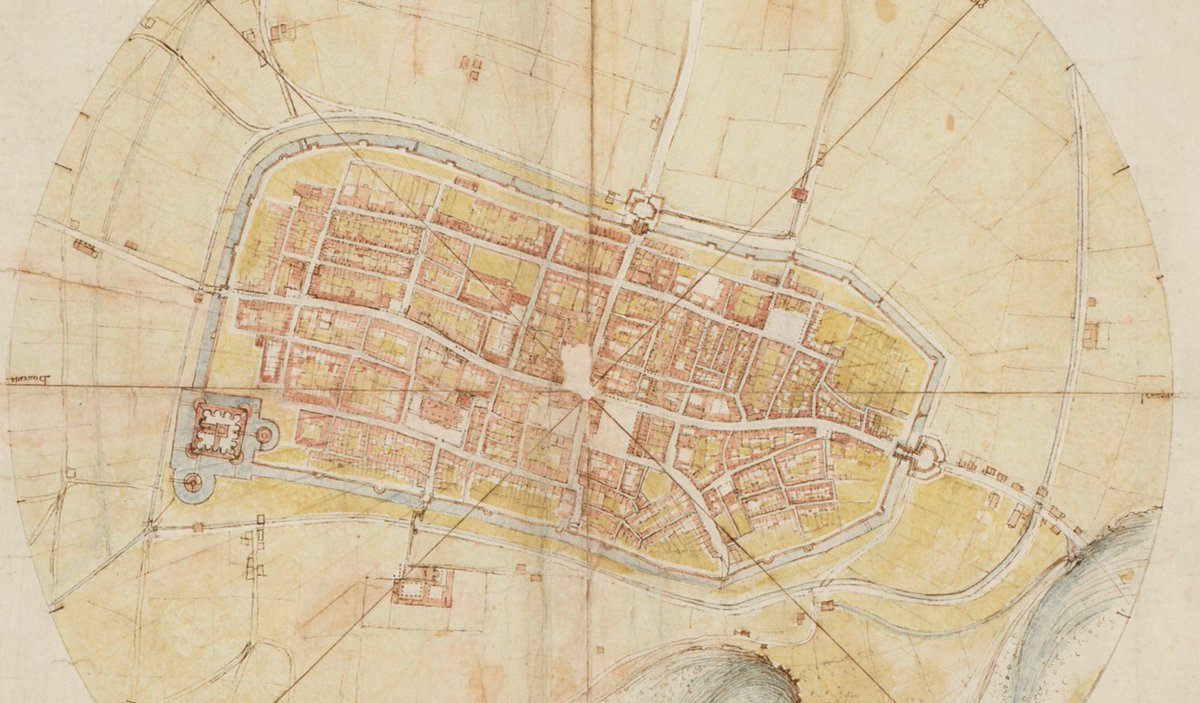 Au tout début du XVIe siècle, Léonard de Vinci entre au service de César Borgia. Une de ses premières commandes est la réalisation d'une carte de la ville d'Imola