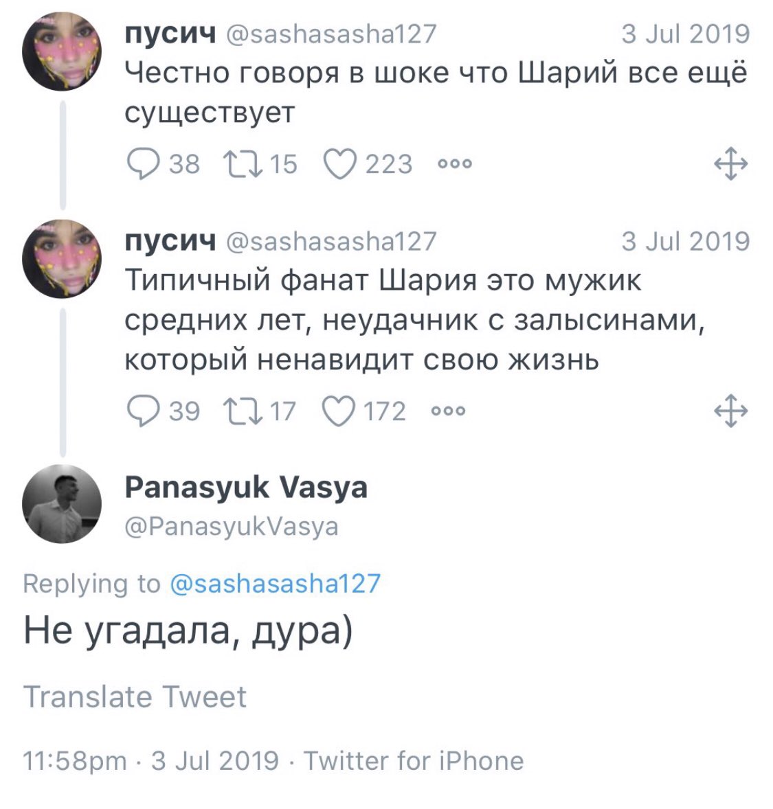 Б)Далі Вася не може зрозуміти у чому проросійськість Шарія.