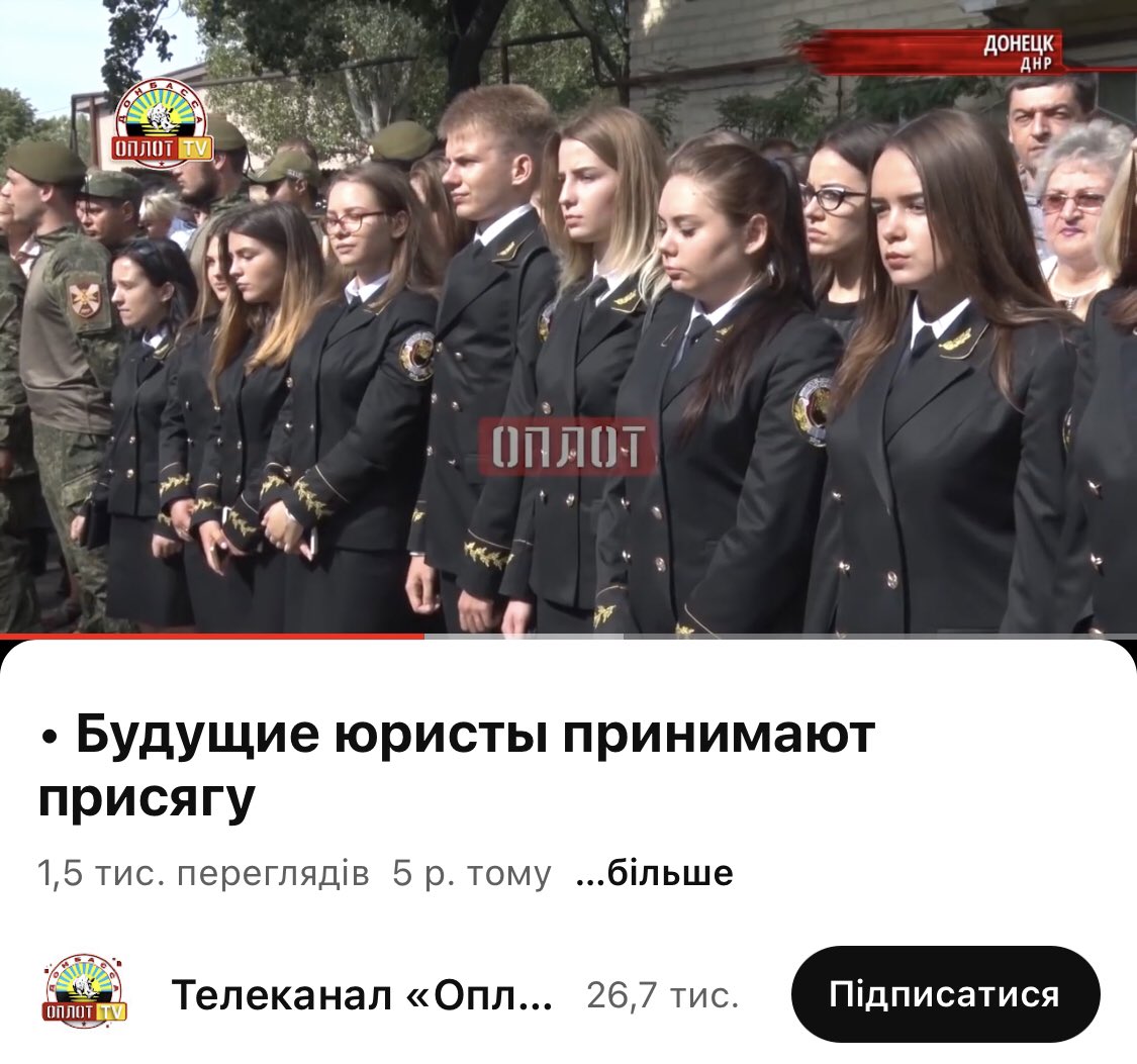 Пояснюю - ДонЮракадемія - це військове училище, яке готує силовиків з для російського окупаційного корпусу. Вони на колінах перед знамєнєм днр приймають присягу!