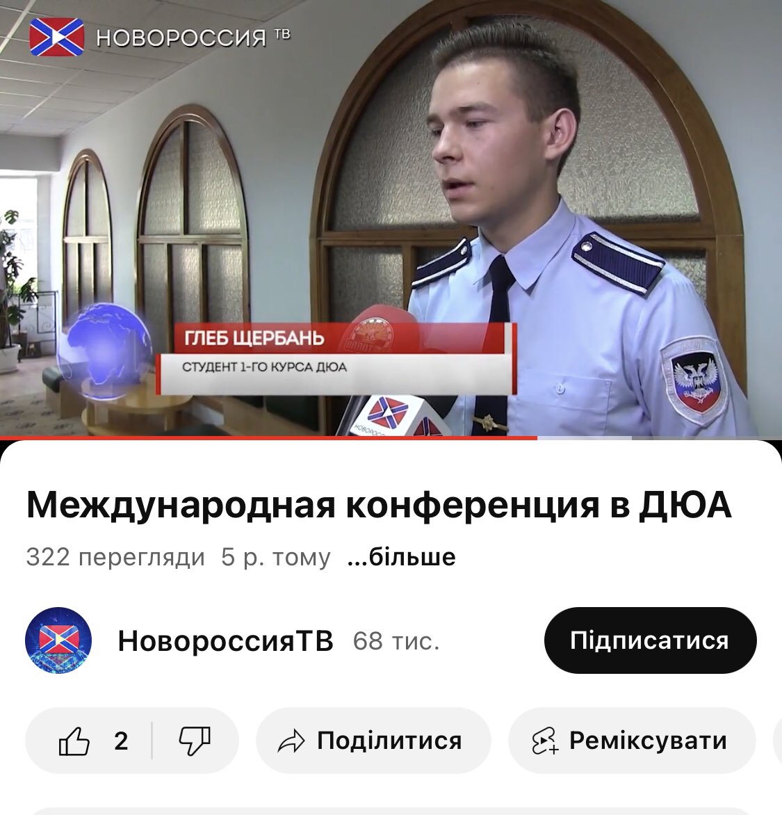 Тобто, людина яка давала присягу днр, носила шеврон з російською куркою, приїздить влаштовується на роботу до державного каналу і робить сюжет про протести українських націоналістів і патріотів в стилі російської пропаганди..