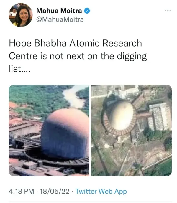 Here is Saba Naqvi (@_sabanaqvi) sharing a ‘Whatsapp forward’ which compares the domed structure at the Bhabha Atomic Research Centre with a Shivlinga 1/n