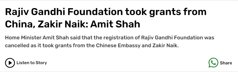 Yes, the same Rajiv Gandhi Foundation which is accused of receiving funds from the Chinese embassy and Islamic preacher Zakir Naik — on account of which its FCRA license was cancelled in 2022 by the Indian Government 2/n
