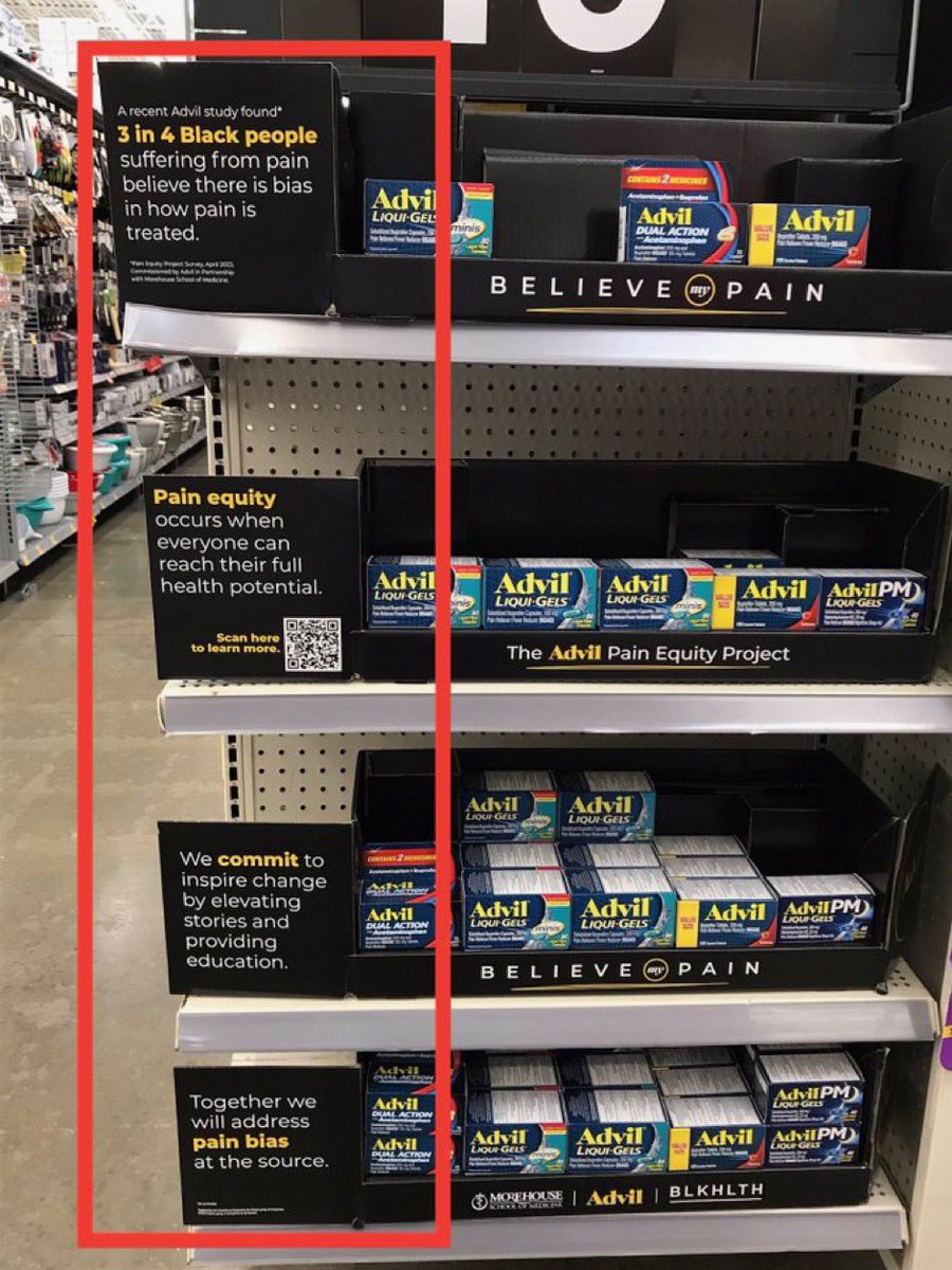 Advil apparently believes true pain relief targets pain at the source, which is apparently in bias ("racism"). This initiative is somehow supposed to address the racism and thus fix the true source of (black) pain.