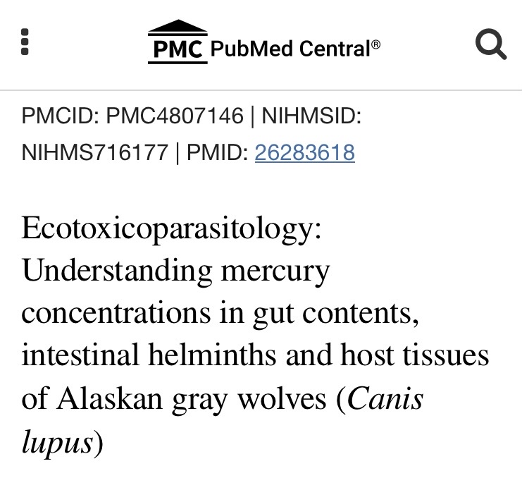 'Ecotoxicoparasitology: Understanding mercury concentrations in gut contents, intestinal helminths and host tissues of Alaskan gray wolves (Canis lupus).'