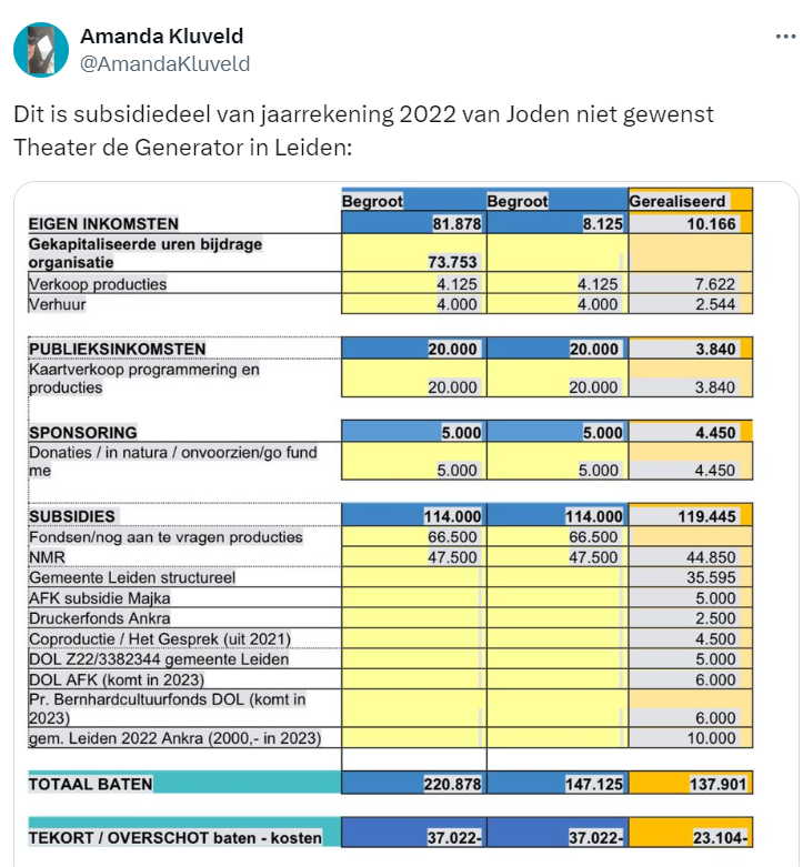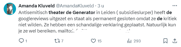 Ook hier weer met de denigrerende kwalificatie 'subsidieslurper' en de leugen dat De Generator Joden zou willen weren.