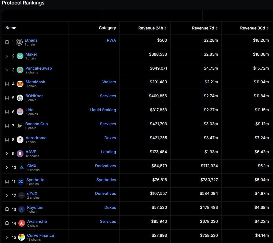 Ethena has quickly become the highest revenue generating dApp in crypto, eclipsing all of DeFi and sitting behind only the largest L1s