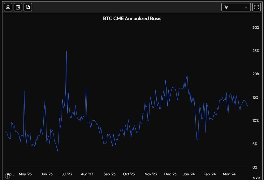 @ethena_labs @Delphi_Ventures @yan_liberman @CryptoHayes 37/ Even when we look at TradFi, CME Bitcoin futures are bigger than Binance and are currently yielding ~15%. In general, futures yield basis is positive the vast majority of the time as a proxy for the cost of capital