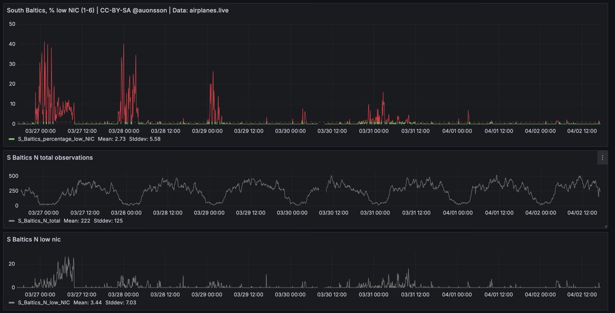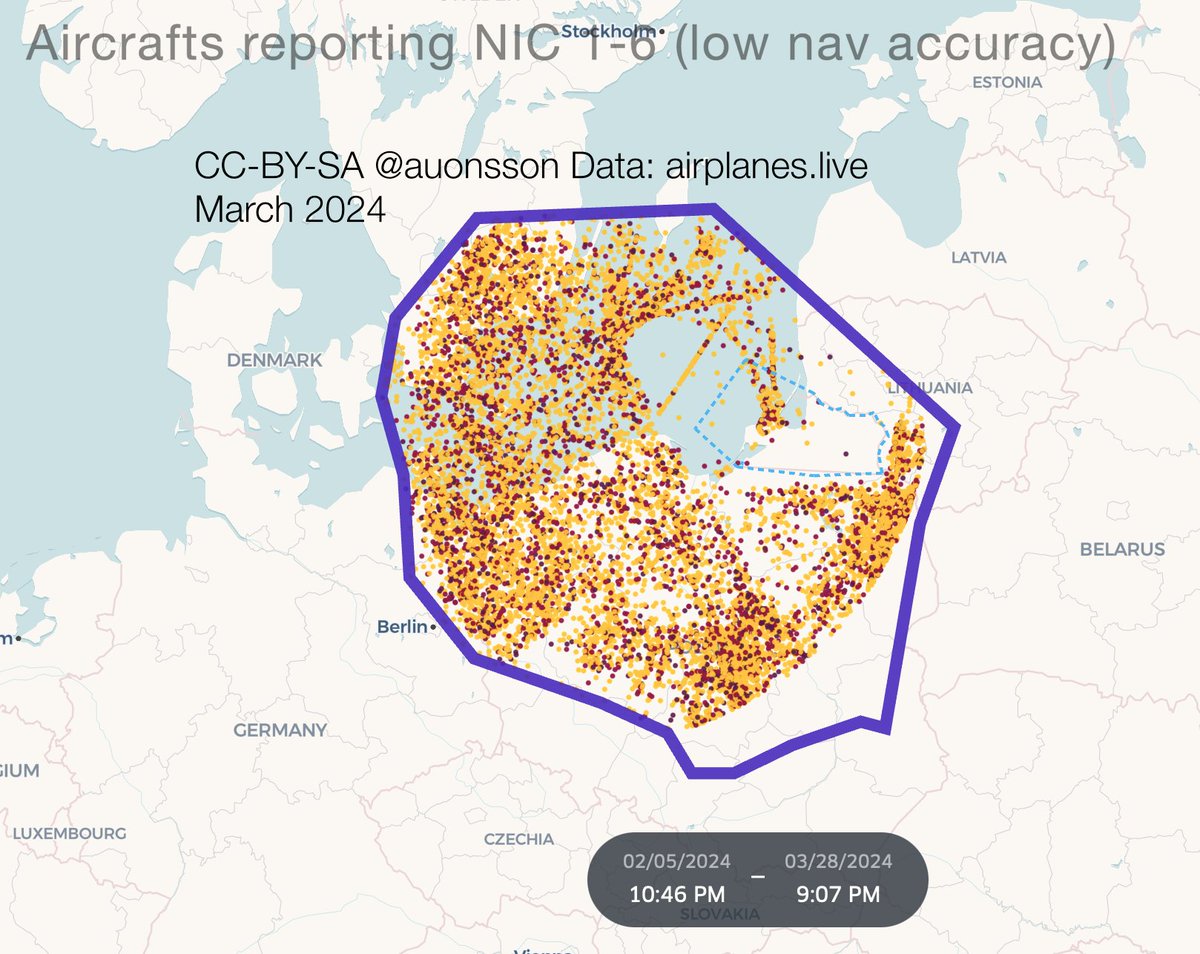 Further along this line, the last week the Jammer has occassionally ran in a low power configutation only affecting planes in the immediate vicinity, mainly Gdansk.