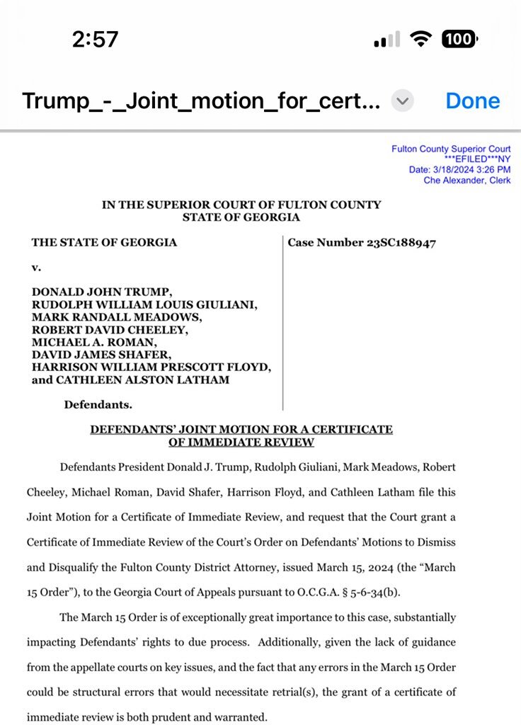 1/Trump & some of his co-defendants have now asked Judge McAfee for permission to appeal his decision that Fani Willis can stay on the case.