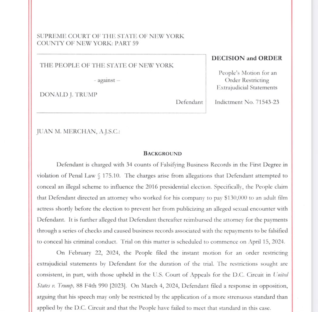 1/On Tuesday, the Judge in the Manhattan DA’s criminal case against Trump entered a narrow, limited gag order against the former president. And it turns out that what it doesn’t prohibit is as important as what it does. nycourts.gov/LegacyPDFS/pre…
