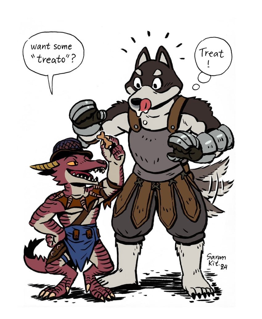 In Dungeon Meshi, Kuro the kobold. Kobold are dog men.