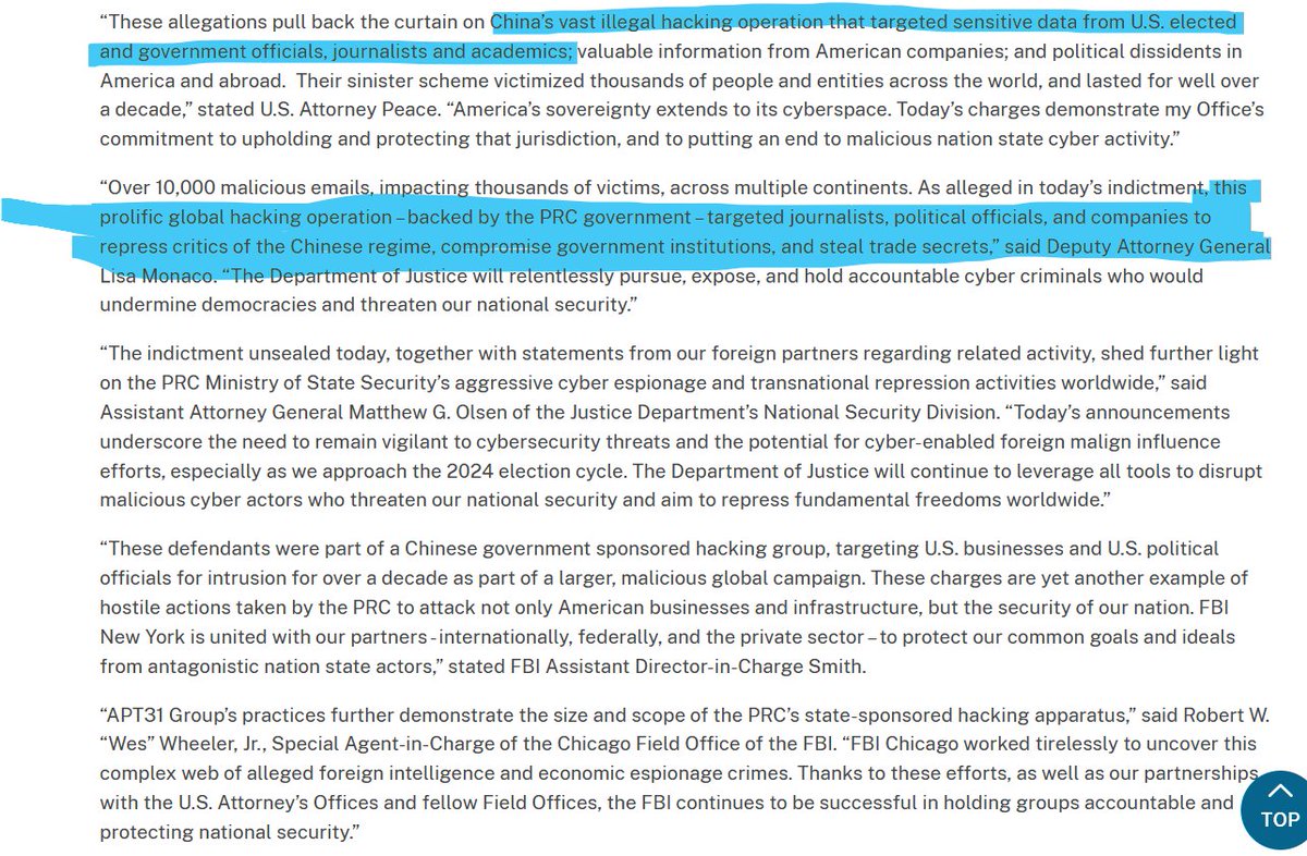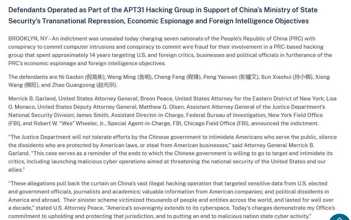 Looks like FBI successfully penetrated Advanced Persistent Threat group 31 to identify individual hackers. A few of them at least.