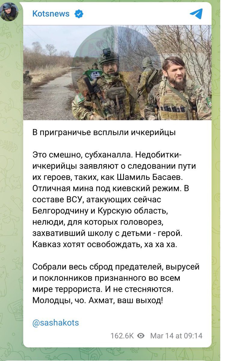 And the photo I posted of Rustan aka Abdul Hakim al-Shishani fittingly came from SVR Reshetnikov’s son in law Kots. He recently posted on his telegram channel