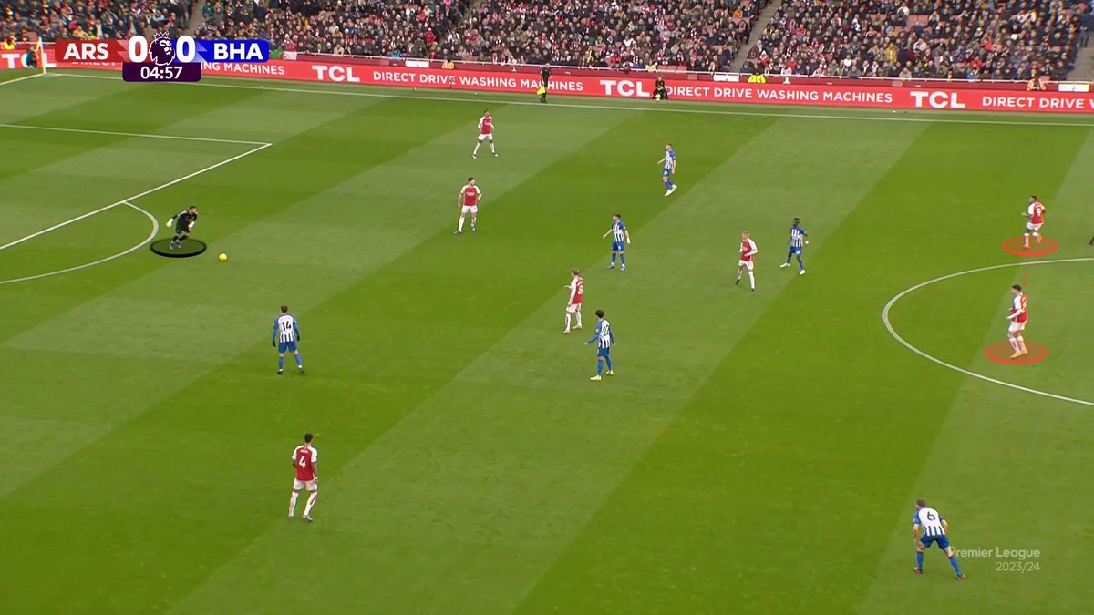 We can see what De Zerbi was trying to achieve below. Arsenal matched up in man-to-man fashion from opposition goal kicks so De Zerbi wanted to test Arsenal's adherence to the game plan and co-ordination.