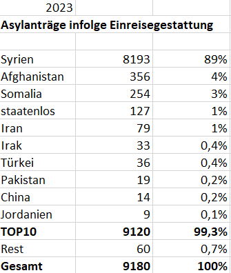 Tatsächliche Asylanträge infolge Einreisegestattung gab es 9.182 im Jahr 2023. Im Vorjahr waren es 4.181. #asylfakt75