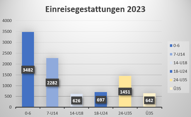 Im vergangenen Jahr gab es ca 14.000 Anträge auf Einreise. In 10.642 Fällen wurde die Einreise gestattet.