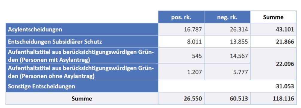 "4 von 5 Asylanträgen waren im letzten Jahr negativ – negativ beschieden. Ablehnung."