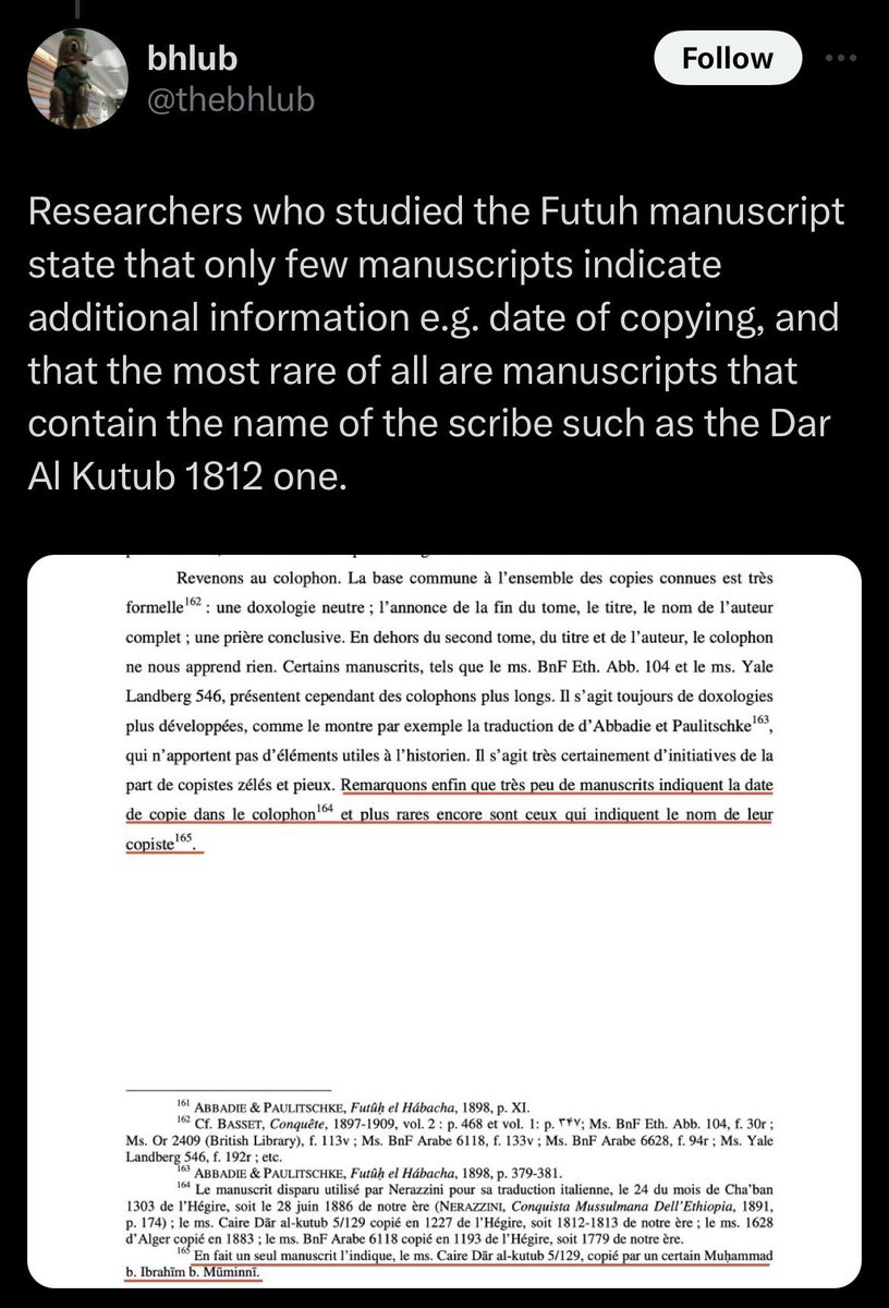 Somaliland separatists like @thebhlub often use this copy named Dar Al Kutub, this copy is coincidentally mispells Habar Maqdi due to a poor scribe who copied it from another manuscript.