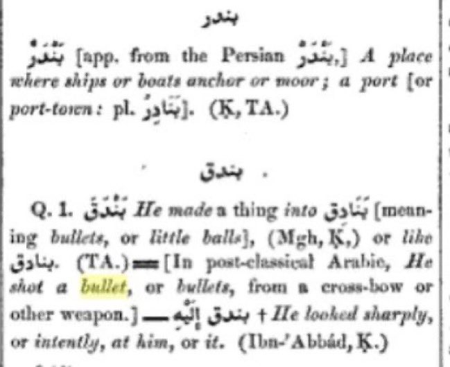 Arab dictionary reveals that Bunduq means bullets and Naqaaniq means battering ram which is used to take down gates