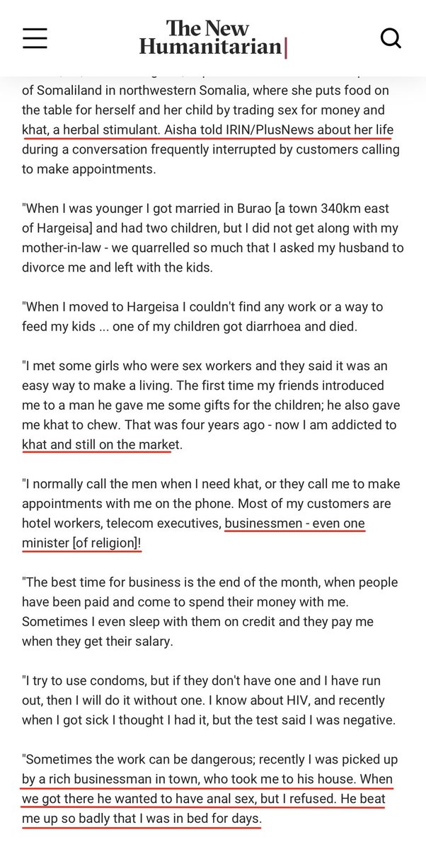 The female sex worker also highlighted how she had a client that was the minster of religion in Somaliland.