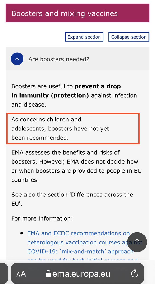 Il Min.Salute ad esempio ha lanciato la campagna per le 3e dosi degli over12 a fine 2021 (e senza 3a dose non si aveva green pass), Ema soltanto a fine febbraio 2022, come da comunicato ufficiale