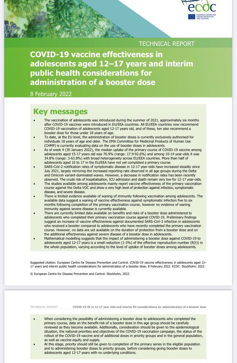Ancora a febbraio 2022 l’Ecdc europeo raccomandava prudenza nelle terze dosi ad adolescenti e ragazzi, ma in Italia la campagna vaccinale per la terza dose anticovid rivolta a adolescenti e ragazzi impazzava.
