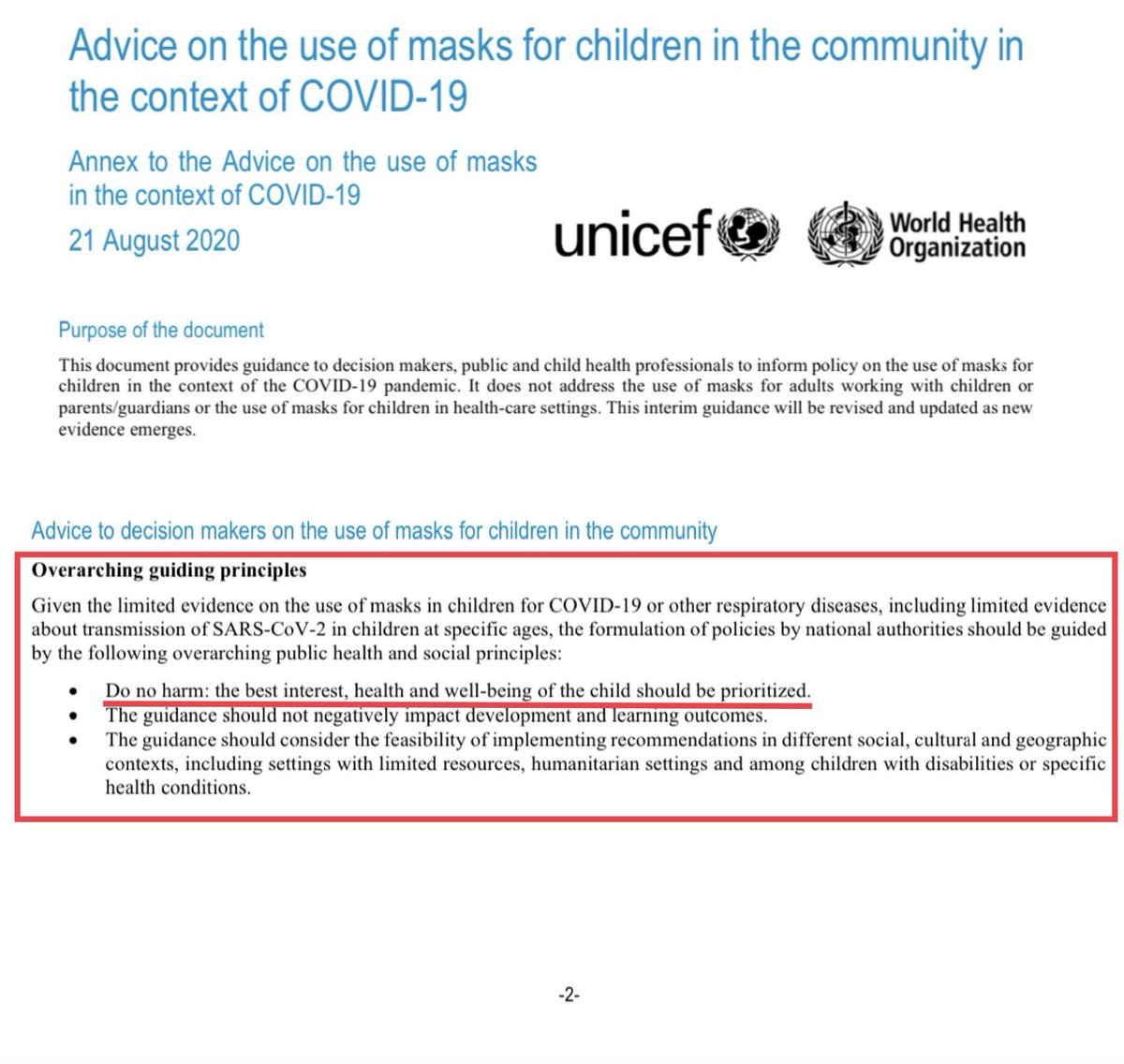 Pour cause: gia ad agosto 2020 la guida OMS sull’uso delle mascherine nei bambini in comunità sottolineava che i benefici dovevano essere soppesati rispetto ai potenziali danni associati, inclusa fattibilità e fastidio, considerazioni sociali e di comunicazione: fu ignorata. 20/
