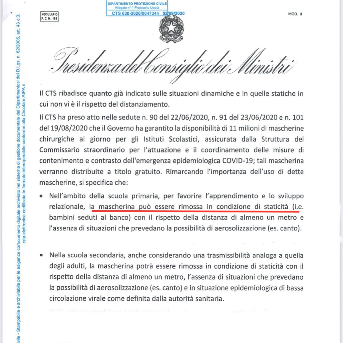 Fu ignorato anche il verbale del Cts di fine 2020 in cui il Comitato Tecnico Scientifico riconosceva l’impatto delle mascherine specificando chiaramente che “la mascherina a scuola può essere rimossa in condizioni di staticità”. 21/
