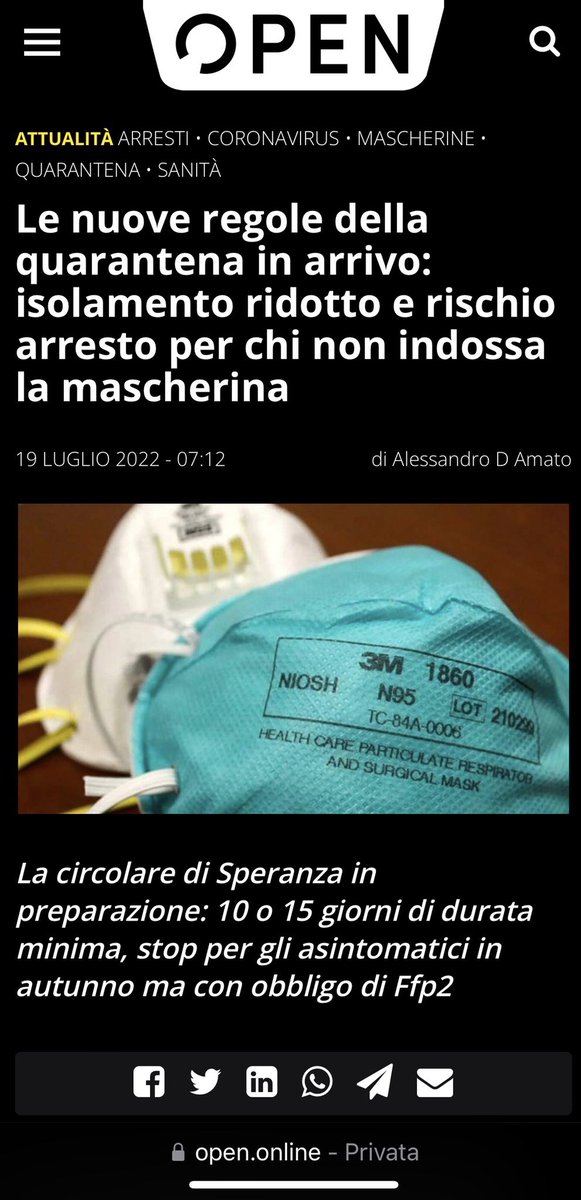 Il ministro Speranza, a dispetto di tutte le evidenze, era ossessionato dall’uso delle mascherine. In questo sito si riferisce addirittura che, ancora a luglio 2022, Speranza pensava all’arresto degli asintomatici che non indossavano la mascherina.