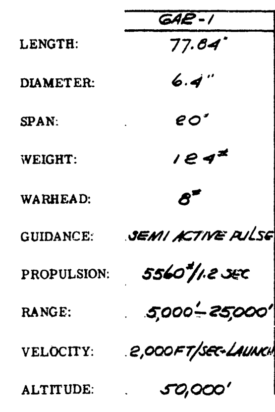 Immediately, problems were recognized with this airframe design. The early GAR-1s suffered in performance at high altitudes, where interceptions were expected to be taking place. A new design was needed.