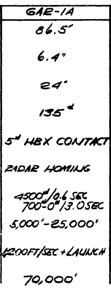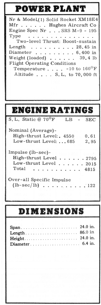 GAR-1A and GAR-1C, the Super Falcon prototypes, were not far off from what the GAR-3 and GAR-4 would become. These used a different motor with two burn stages, boost and sustain, and a much increased maximum range of about 7 miles at high altitudes. (GAR-1A/1C pictured)