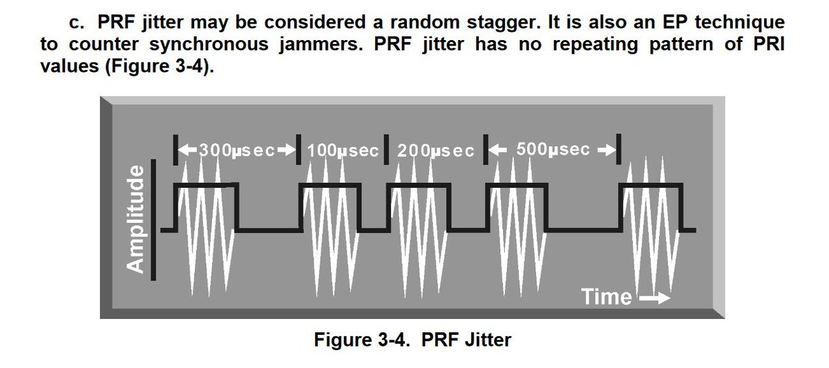 However, around the same time as the GAR-3 was developed, a system was introduced to increase the F-106's jamming resistance. This would "jitter" the pulse repetition frequency, a random staggering of pulses to prevent a jammer from sending out false return pulses at a fixed PRF.