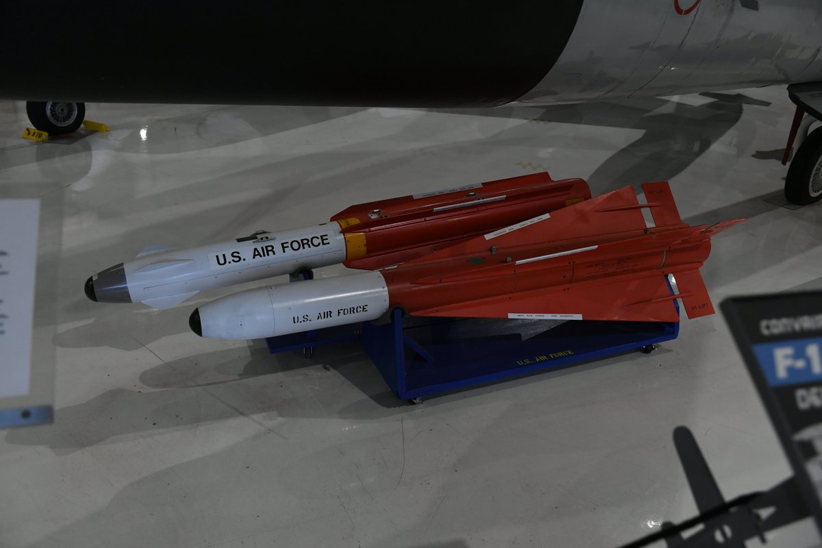 There was a second missile in this airframe design, called GAR-1B, which was identical in every way except its guidance, which was basic, short-range infrared. The seeker assembly was very similar to that of the AIM-9B Sidewinder, though the control scheme was different.