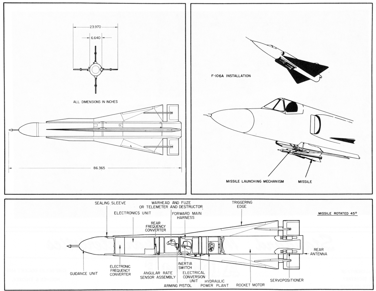 The GAR-3, derived from the GAR-1A, became the AIM-4E and incorporated anti-jamming circuitry to prevent the missiles from losing a lock on a target that was trying to jam the F-106's radar and the missile seekers themselves. It also had a larger antenna.